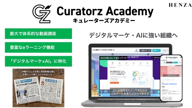 株式会社HENZAは2026年3月1日、法人向けAI教育eラーニングサービス「Curatorz Academy(キュレーターズアカデミー)」を正式にローンチしました。本サービスは、eラーニング教育、AI業務アプリ開発、エージェントチーム構築を組み合わせ、生成AIの活用を個人のスキルから組織全体の仕組みへと転換することを目指します。
